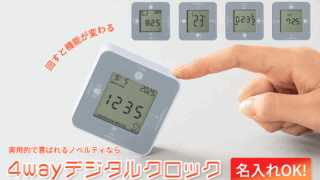 4wayデジタルクロックを徹底レビュー!時計・アラーム・タイマー・温度計の4機能を搭載したコンパクトでおしゃれなデジタル時計。名入れ対応でノベルティにも最適。直感的な回転操作で簡単に使え、デスクや寝室、キッチンなど幅広いシーンで活躍します。企業の記念品やイベント配布におすすめの理由を詳しく紹介します。