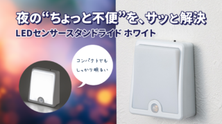 LEDセンサースタンドライト ホワイトの使用レビューを3名のリアルな声で紹介。夜間の廊下や玄関、防災用途にも活躍する実用性の高いノベルティです。名入れ対応で法人向け記念品・展示会ノベルティにも最適。おすすめ業種・配布シーンも詳しく解説。