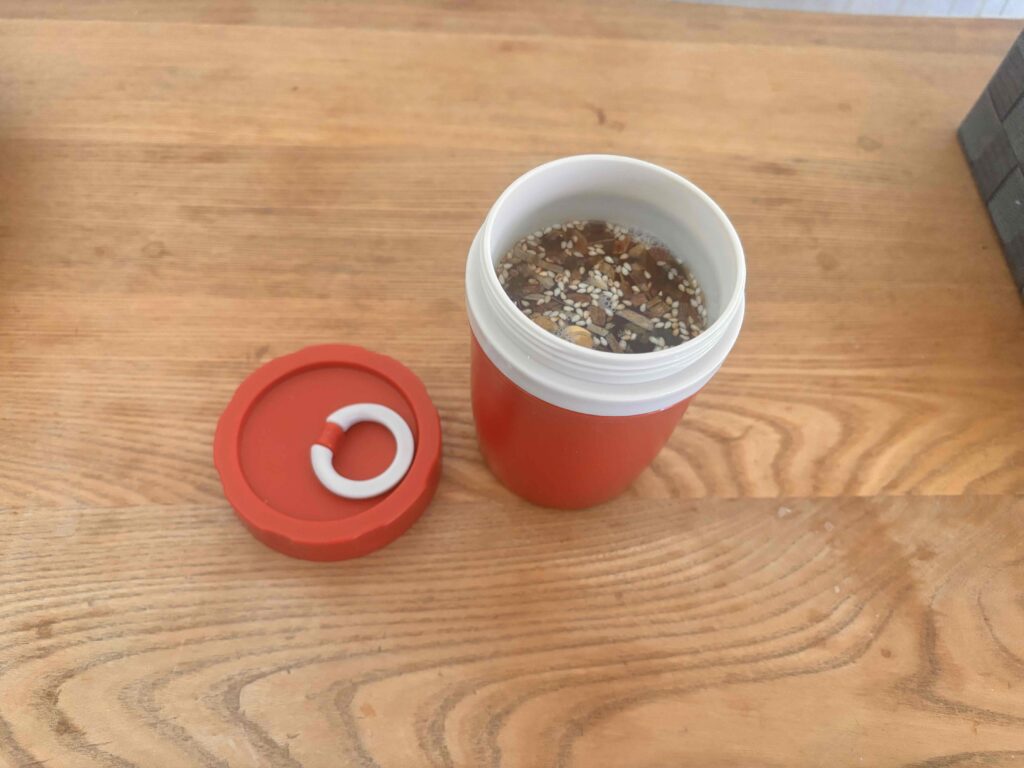 気になる点としては、密閉度。カバンに入れて持ち歩く際、完全に逆さにしても大丈夫かどうかは少し不安が残りました。念のため、ビニール袋に入れて持ち運ぶと安心かもしれません。