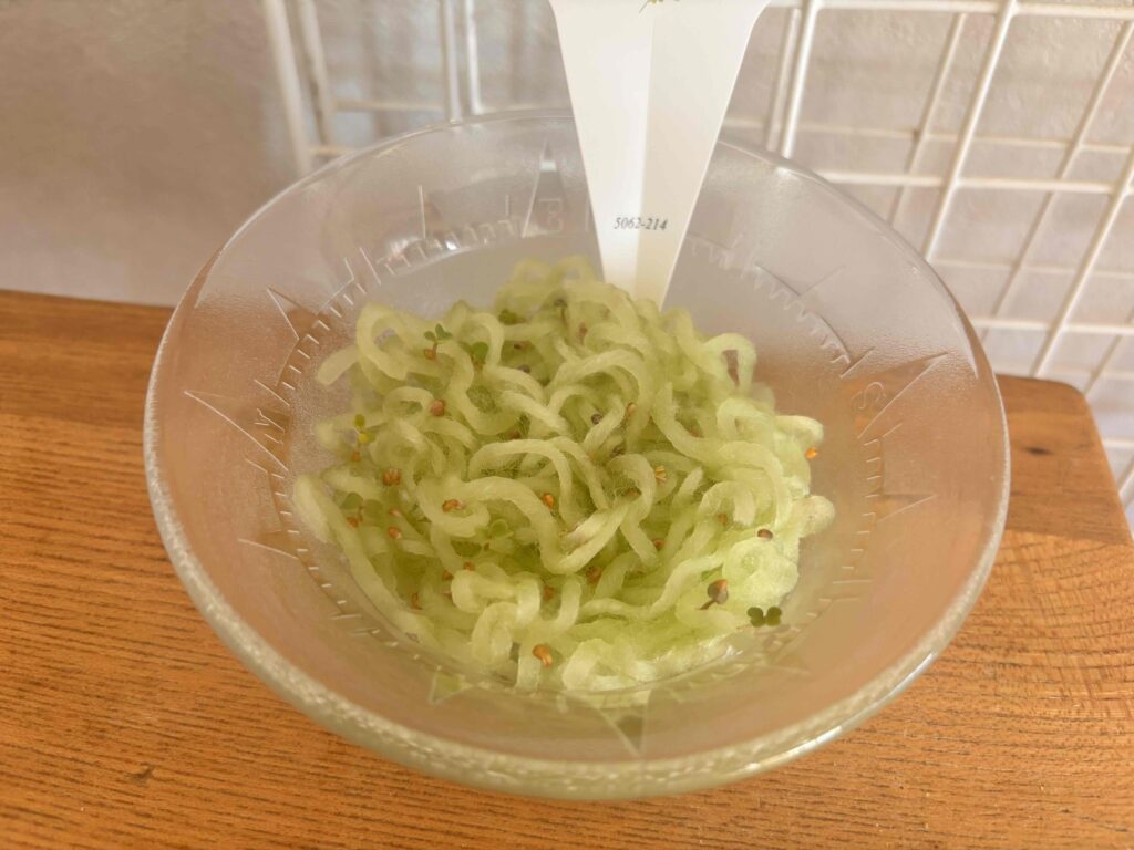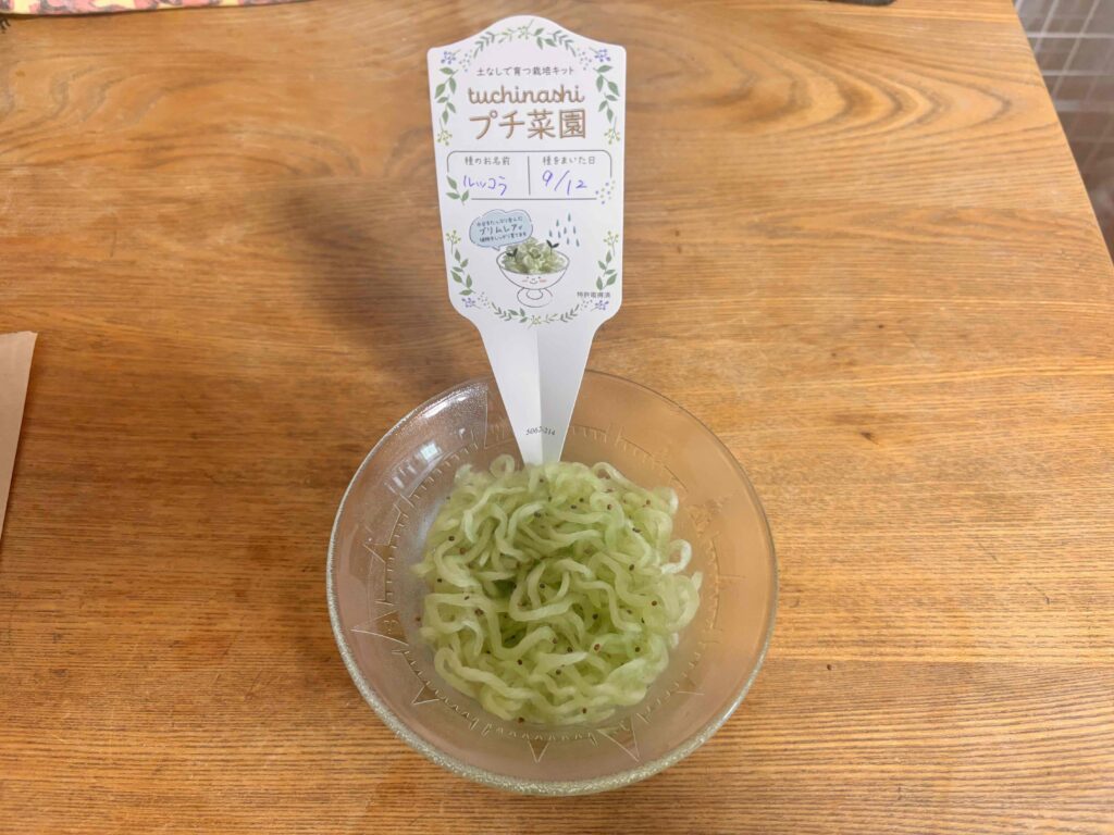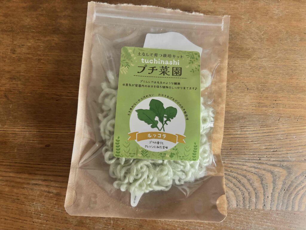 今回はルッコラの種で、スプラウトとして収穫すれば栄養価も高いとのこと。水のあげすぎに注意しながら、今度こそ美味しく育てて食べたいと思っています!