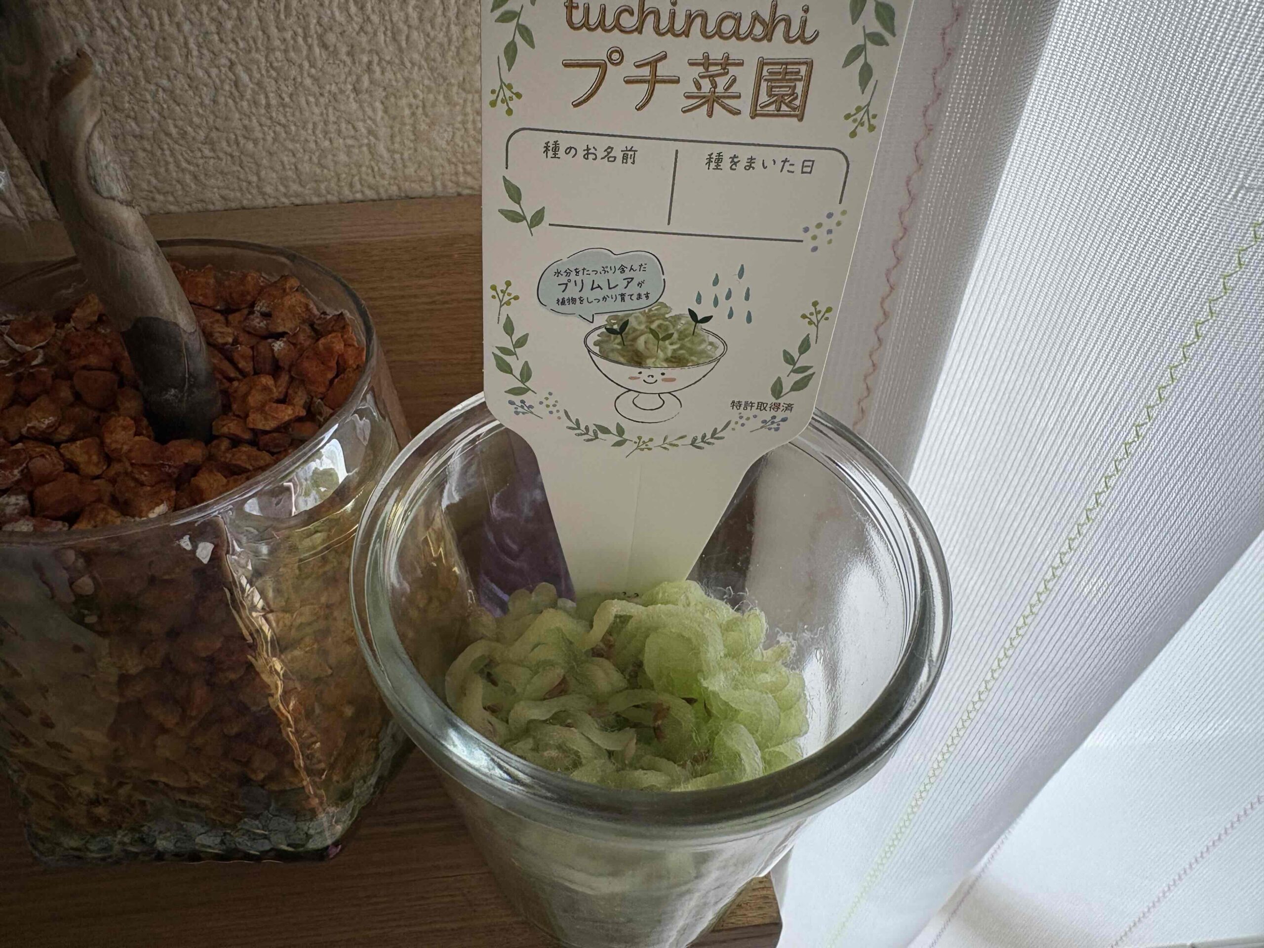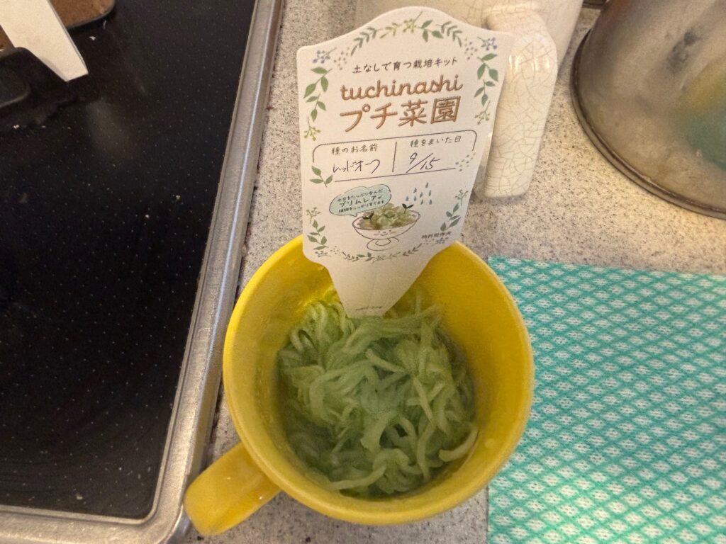 以前、室内で育てるタイプの栽培セットを試したことがありましたが、太陽光が足りず、発芽後にカビが生えてしまい失敗した経験があります。今回はそのリベンジも兼ねて、「土なしプチ菜園栽培セット」に挑戦してみました。