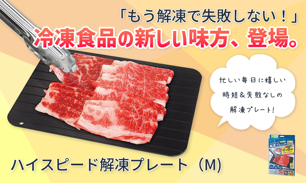 こちらの「ハイスピード解凍プレート(M)」なら、そんな悩みの解消にぴったり!プレートに乗せるだけで解凍時間が短縮される便利アイテムです。