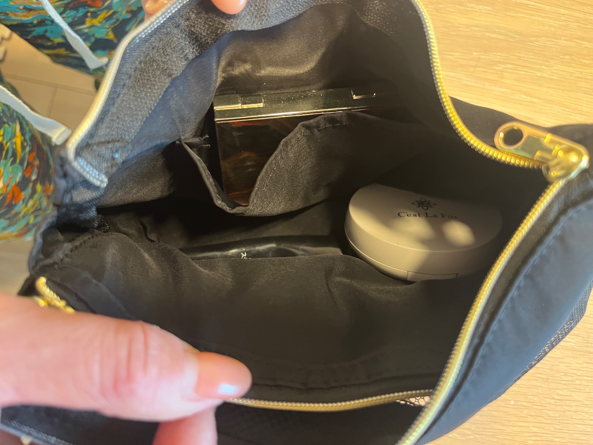 現在、私は銀行や病院へ行く際に使用しています。ナンバーカードやおくすり手帳、家の鍵、携帯電話などを分類して収納できるので、必要なものがすぐに取り出せてとても便利です。チャックが内外に2つ付いているため、紛失の心配もなく安心して使えます。