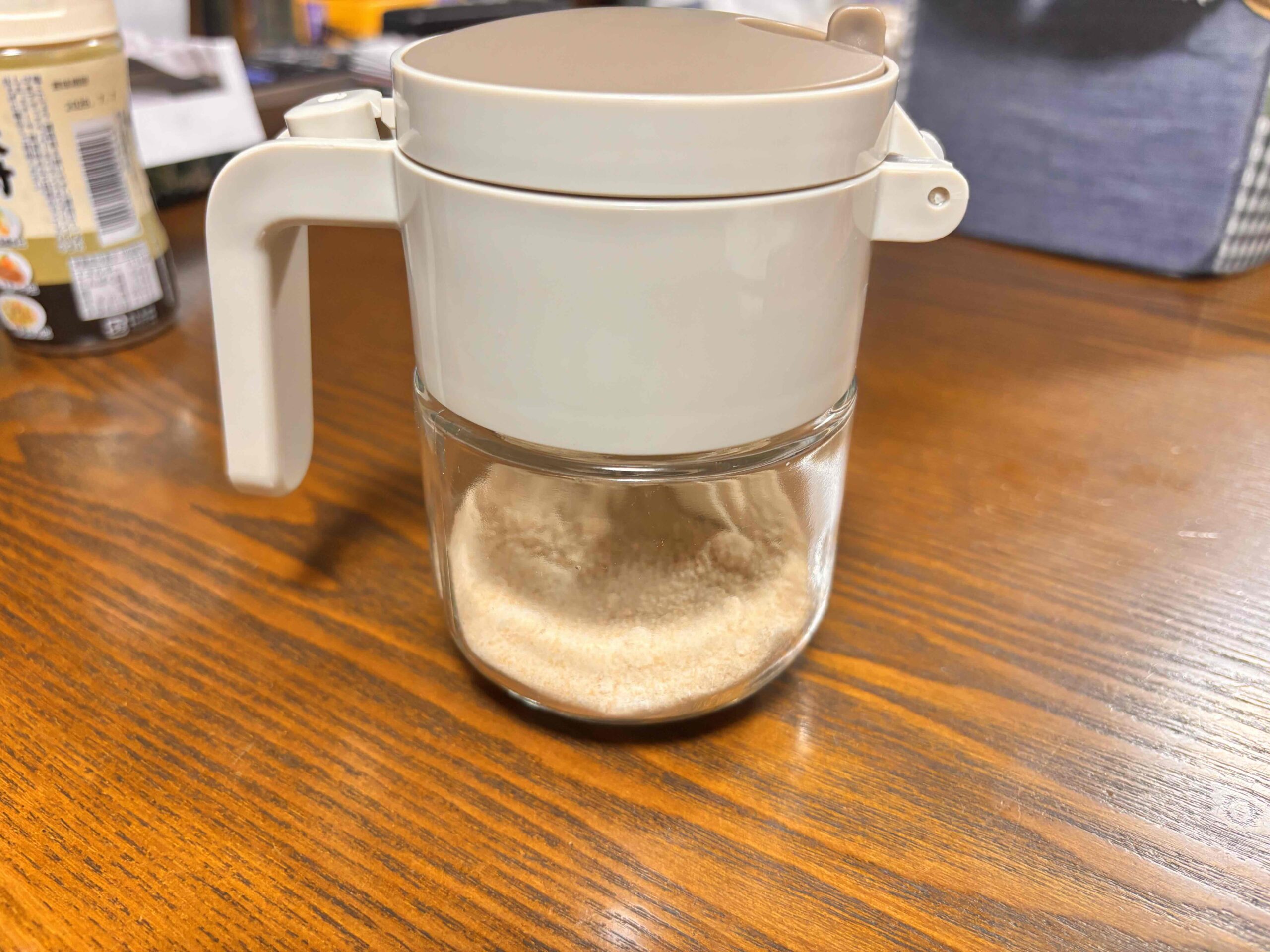 実際に使ってみて、まず感じたのは細やかな工夫です。取っ手は持ちやすく、ボタンの位置やサイズも操作しやすい。密閉性も高く、湿気に弱い調味料でも安心して使えます。取り扱い説明には「完全密封ではない」とありますが、顆粒状のだしの素を入れてしばらく経っても固まらず、さらさらの状態を保てているのには驚きました。
