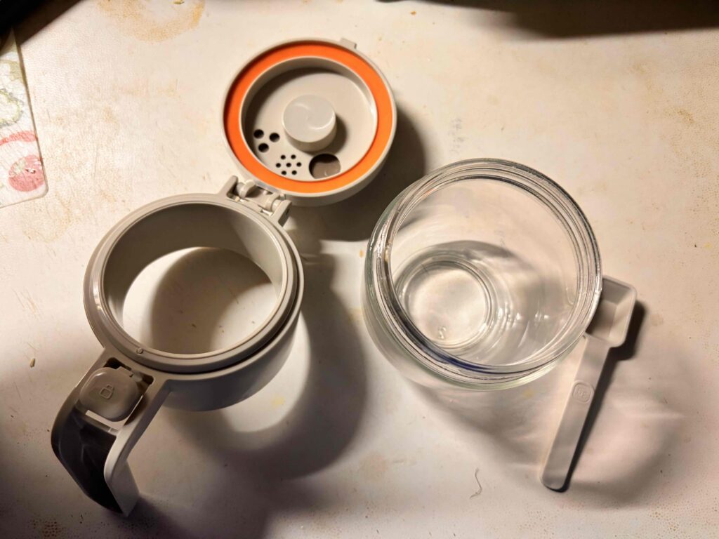 個人的に特に良いと思ったのは、下部がガラス製であること。プラスチック製と比べて濁りが出にくく、洗った後も清潔感がしっかり保てます。分解しやすい構造なので、ブラシで隅々まで洗えて衛生面も安心です。