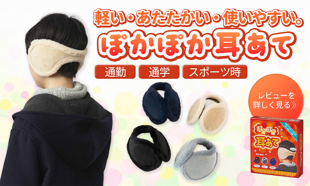 後頭部から装着するタイプの耳あては、髪型を気にせず使え、持ち運びもしやすいのが魅力です。
