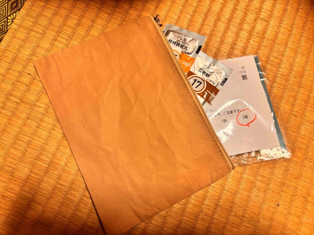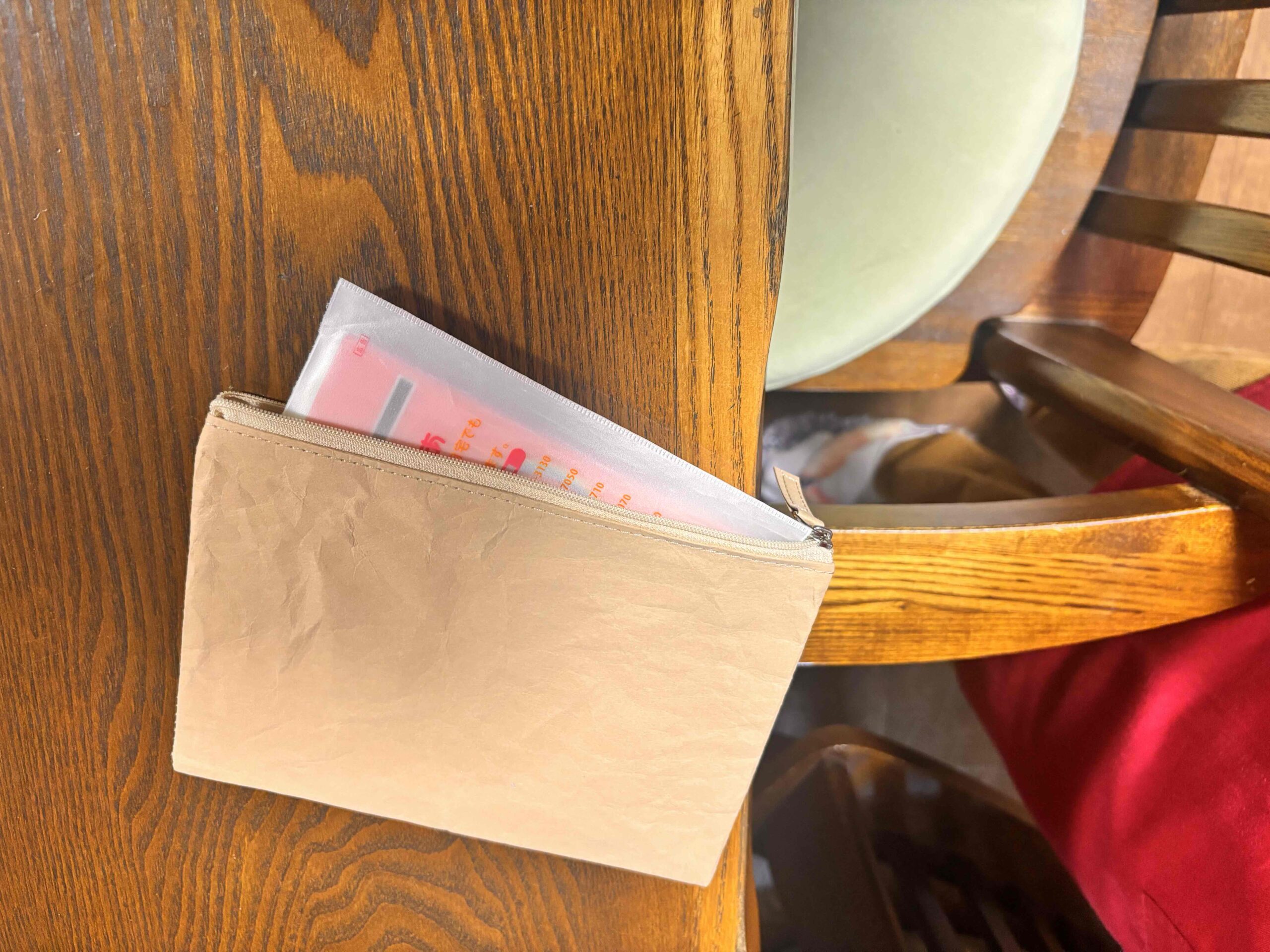そんなとき、このウォッシャブルペーパーフラットポーチをノベルティとしていただき、「これは使えるかも…!」と試してみることにしました。