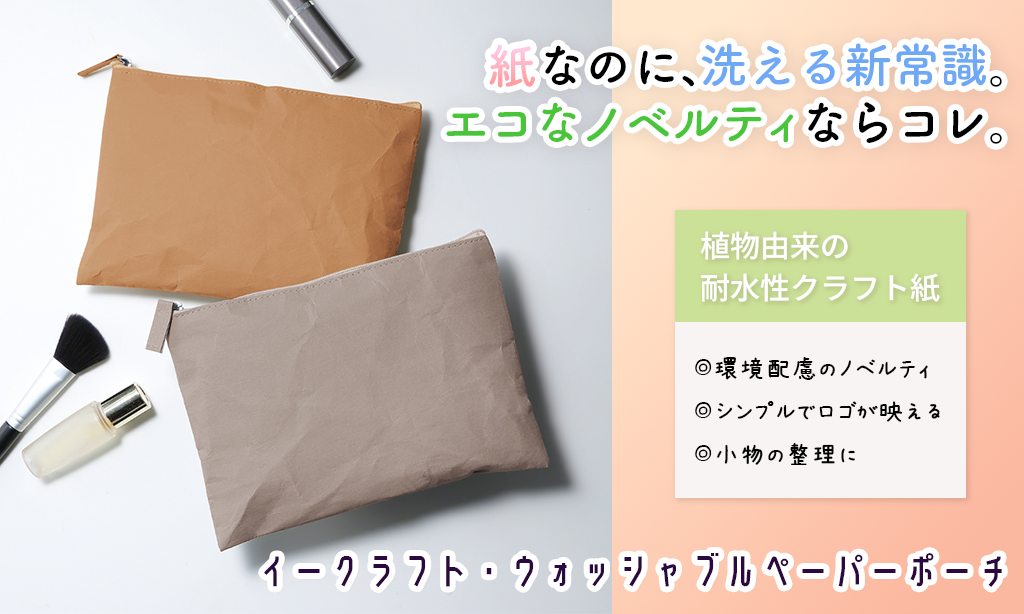 こちらの「イークラフト・ウォッシャブルペーパーフラットポーチ」なら、そんな悩みの解消にぴったり!環境にやさしいエコ素材のフラットポートです。