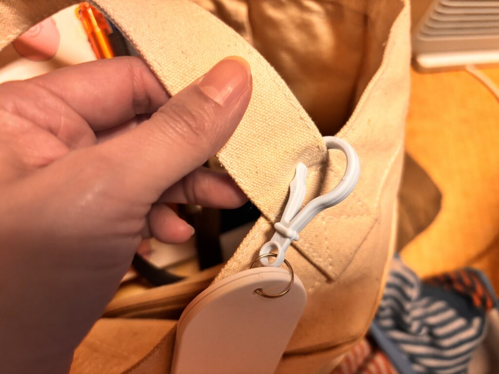実際に使ってみると、まずバッグの内側に付けておくとハンカチがすぐ見つかる便利さに感動しました。私は高齢になり、バッグの中でハンカチを探すことが増えていたのですが、このホルダーを使うようになってからストレスが大きく減りました。