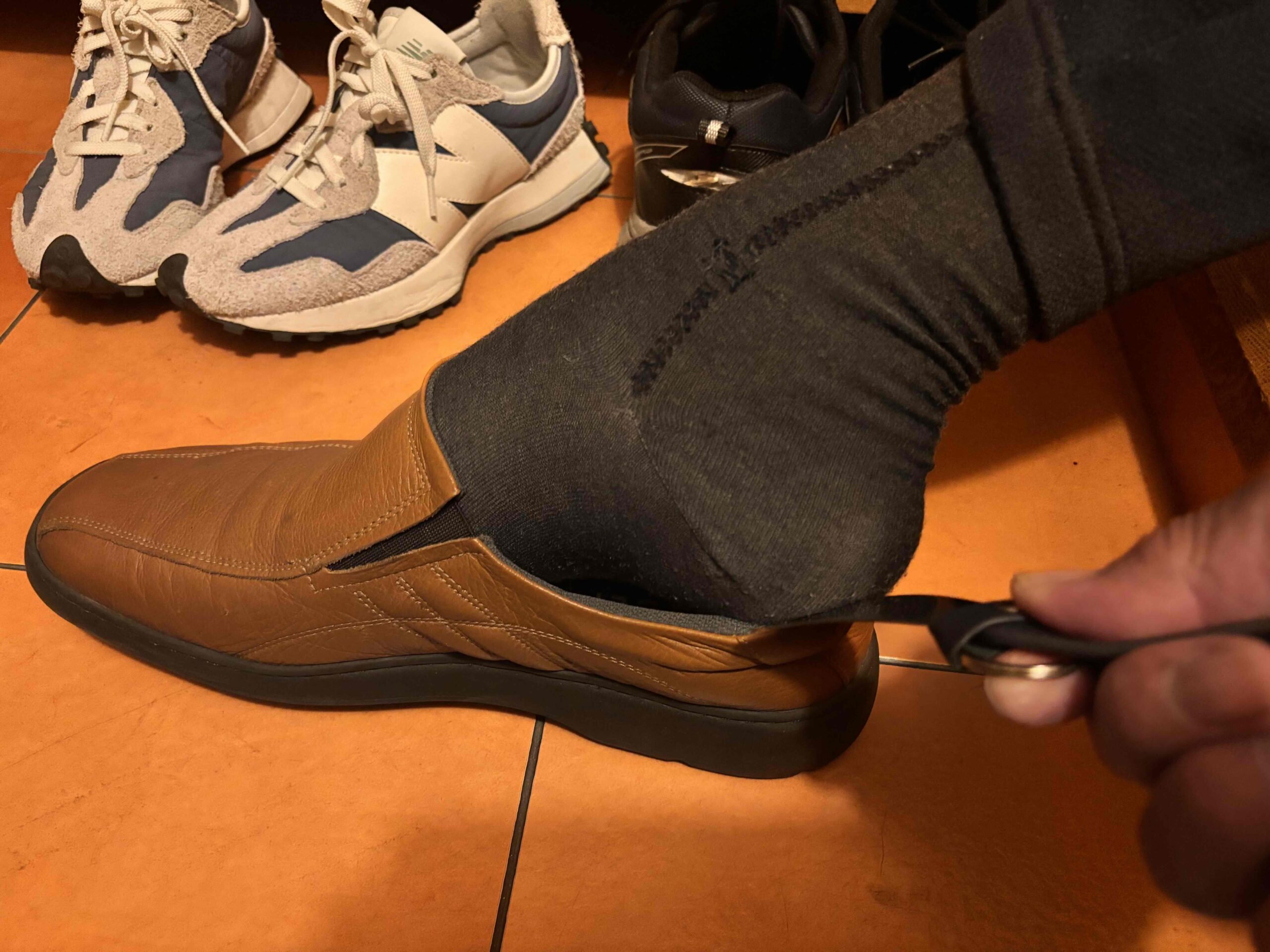 最近、「お気に入りの靴をできるだけ長く綺麗に履きたい」という気持ちが強くなり、靴を丁寧に扱う習慣を始めたいと思っていたタイミングで、この「PREMO リサイクルレザー携帯靴べら」をいただきました。試しに使ってみたところ、その便利さと使いやすさにすぐに魅了されました。